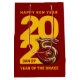Celebrate the Year of the Snake in 2025 with this gift bag, which features the year 2025 styled in a bold bright yellow font, and AI-generated artwork of a stylized Asian serpent artistically standing in for the number 5 on royal red backgrounds. Customize messaging as desired.