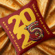 Celebrate the Year of the Snake in 2025 with this throw pillow, which features the year 2025 styled in a bold bright yellow font, and AI-generated artwork of a stylized Asian serpent artistically standing in for the number 5 on a royal red background. Customize messaging as desired. Reverse shows identical design.