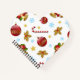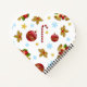 Pretty heart shaped Christmas notebook. Beautiful red and golden Christmas balls, Christmas bell with bow, red and white candy cane, snowflakes and golden stars. Perfect Christmas gift for your family and friends.