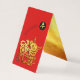 Composition with golden traditional Chinese paper-cut of an Ox + small modern lettering for Year of the OX 2021 and Chinese Ox Ideogram Symbol onto a small black circle. Design on vertical folded cards with golden textured paper (printed image) inside. Matching greeting card, holiday postcard, invitation and more. Perfect for Chinese New Year of the Ox 2021 or birthday (people born in Ox Year).