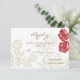 Invitation reply flat card with red and golden roses.