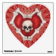 This wall decoration decal shaped like a heart has a Gothic red heart outlined in white bones with a skull in the center on a red background with white spiral lines.