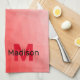Red gradient geometric mesh pattern Monogram Kitchen Towel