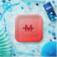 Red gradient geometric mesh pattern Monogram Paper Plates