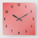 Pretty kitchen wall clock of a red and white gradient color. Twelve black numbers