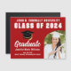 This modern white and red custom senior graduate photo magnet features your graduation photograph next to classy white typography of your college name for the class of 2025. Customize with your graduating year under the chic black handwritten script and black grad cap for a great grad announcement magnetic card.