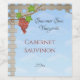 A single bunch of big red grapes hang from the vine on a lattice arbor on this design. All text can be easily customized.