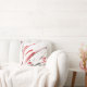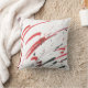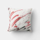Pillow printed with abstract design in red, gray and black on white background, from original watercolor painting.