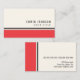 Modern profile or business card featuring a border in red and very dark gray on a slightly off-white / cream colored background. Customizable name and title / company name on the front and contact information on the back. Dark gray text. Stylish and classy design for men and women. Custom colors are available on request. Great design for an engineer, accountant, web designer, IT professional or anyone who wants a contemporary, elegant business card.