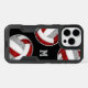 This volleyball OtterBox iPhone case for girls is simply designed with three randomly arranged, stylized red, gray and white volleyballs - a floral kaleidoscopic pattern is blended with the red and gray volleyball panels for an artsy/girly vibe - customize with her monogram - by katz_d_zynes