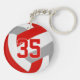 This sporty volleyball themed keychain for boys or girls features a realistic looking red, gray and white volleyball upon which you can customize the player's name, jersey number and court position, plus school or club name and mascot name in a varsity letter style font - by katz_d_zynes