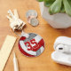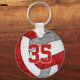 This volleyball keychain with custom team and school mascot name features a floral kaleidoscopic pattern blended with the volleyball's red and gray panels on the front and a simple white volleyball on the back - personalize with her name, team name and jersey number - by katz_d_zynes