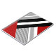 Colorful geometric design illustration in Scandinavian style with stripes and triangles decoration in grey, red, white and black colors for everybody who likes geometric design.