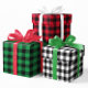 Classic Christmas color buffalo plaid pattern wrapping paper multi set in black and white, bright red, and Kelly green.