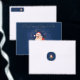 Vintage retro red and blue Santa with Merry Christmas greeting in stylish script and message of love, peace and joy and personalized family name. Perfect for christmas party or christmas dinner.