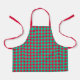 Great color and even though I ordered the kid size, it covers well enough to use during the holidays. I am not a big woman and prefer a shorter apron. I stand 5"6" and the length of the garment goes to mid-thigh. The tie straps fit well at my waist and even though there is no neck strap adjustment, the opening is plenty big enough. I am happy with the size and fit. I am sharing my apron with my 10 year old grandson, too! The color is vibrant and looks good, as shown on the website. The stitching looks strong and reinforced. Photographed is front side and back side of the apron, reinforced straps and coloring. My phone camera may not be the best at showing the details.