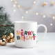 The Red, Green, and Gold Festive Colorful "Merry and Bright" Christmas Mug is a vibrant and celebratory ceramic drinkware that embodies the festive spirit of the holiday season.