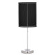 I have purchased other similar lamps. I use them as extra light for guest's. They are inexpensive, easy to assemble and good height for reading. I like that there are many pre-made shades to choose from and that, like this one, you can use your own art.