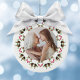 Showcase your Christmas family photo with this simple elegant ornament template, beautifully designed in festive red and green. Featuring a botanical wreath design adorned with cute holly berries and holiday greenery, it brings a warm, seasonal touch to your space. The stylish typography script enhances the charm, making it a perfect Xmas decoration for any home. With its classic home decor appeal and stylish mandala style, this design adds a timeless and elegant touch to your holiday celebrations!