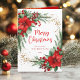 Red Green Elegant Botanical Photo Christmas Holiday Card