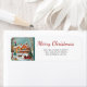 This red and green festive personalized Merry Christmas address label features a warm vintage holiday illustration with a custom family name and address option. Perfect for Christmas cards, holiday mail, invitations, and seasonal stationery.
