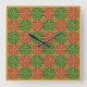 Red Green Fleur-de-Lis Holiday Pattern Square Wall Clock