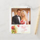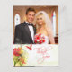 This stylish chic Wedding Thank you photo postcard has a red and green watercolor floral design with two butterflies flying at the bottom left. At the bottom, there is a soft grey silhouette of some water lily flowers. In the background, there is a soft green distressed look. At the top, you can easily customize this with your photograph. On the bottom right, Thank you is written in a trendy swirl font. On the backside, you can easily personalize the thank you message along with the names of the bride and groom and the date of the wedding ceremony. This is an affordable way to say Thank you to all of your friends and family who were a part of your wedding day.