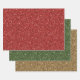 Red Green Gold Glitter Holiday Christmas Trendy Wrapping Paper Sheets