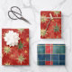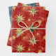 Red Green Gold Stars Christmas Wrapping Paper Sheets