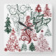 Red Green Holiday Christmas Tree Pattern Square Wall Clock