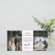 Photo wedding card to say thank you and wish your wedding guests merry Christmas. Add two of your own wonderful wedding photos and a personal thank you message and wishes for the holidays and new year. Add your names as well below a hand-drawn illustration of a mistletoe twig. Thank your wedding guest and wish them a Merry Christmas with this festive red and green mistletoe themed photo card personalized with your wedding photos, names, and a Christmas greeting.