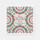 Personalized Christmas paper napkin design featuring festive red and green stylized Nordic folk motifs on a linen background. The text is fully customizable. To change it use the Personalize option. For more changes, such as changes to the font, font color or text layout, use the Edit design tool option.