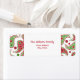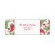 A Christmas address label featuring a red and green paisley design and red text.