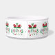 Cute red and green Santa hat Christmas bells Christmas dog or cat feeding or water bowls.