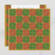 A custom Christmas invitation template with script letters and red and green holiday art with a vintage fleur-de-lis pattern restored from antique tiles on a golden background. Customize It to change fonts or background colors, even save your design for later.
