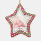 The text and photo on this Baby's First Christmas star shaped ornament are easy to customize. The design features a red and green snowflake pattern photo frame. A pretty option for a baby's 1st Xmas keepsake ornament. Make sure to check out the back as well, as there you can customize it with your baby's name! To change the text and photo use the personalize options. For more extensive changes to the ornament, including changing the font, font size, font color, text placement, picture size and/or picture placement, use the customize it option.