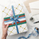 Red|Green|White Stripe| Gold Crown Pattern | Royal Wrapping Paper