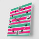 Red -green striped horizontal pattern square wall clock