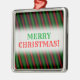 This design features red and green stripes/lines on a dark background. The stripes/lines are somewhat blurry, and could perhaps be considered to look like laser beams. It also features a warm greeting of "MERRY CHRISTMAS!".