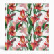 Elegant red and green summer lily watercolors illustration on white background seamless pattern.
