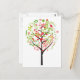 Red green tree and cute birds postcard, featuring a colourful red green tree with a variation of leaves and birds.