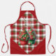 Great color and even though I ordered the kid size, it covers well enough to use during the holidays. I am not a big woman and prefer a shorter apron. I stand 5"6" and the length of the garment goes to mid-thigh. The tie straps fit well at my waist and even though there is no neck strap adjustment, the opening is plenty big enough. I am happy with the size and fit. I am sharing my apron with my 10 year old grandson, too! The color is vibrant and looks good, as shown on the website. The stitching looks strong and reinforced. Photographed is front side and back side of the apron, reinforced straps and coloring. My phone camera may not be the best at showing the details.