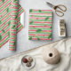 RED GREEN WHITE STRIPES & MISTLETOE LEAVES WRAPPING PAPER