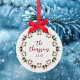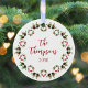 Winter greens with pine cones and red Christmas berries ornament. This design features Christmas holiday botanical greenery, a family calligraphy script typography design, with holly berries pine cones pinecones, a rustic nature illustration template, wintergreen leaves branches season, elegant trendy stylish mandala circle, elegant calligraphy script font text, a whimsical typography design, a simplistic elegant minimalist template, Christmas holiday gift favor custom