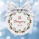 Lightweight, smooth, pure white ornament with nice sheen. Perfect size to be seen from across the room ... and to attract closer inspection! Price was great for ordering enough for the whole family! Clear, bold black design just as requested. Matches the order exactly. Just so nice!