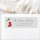 Cute red Christmas stocking return address labels perfect for your holiday mail. This trendy design features a hand drawn Christmas stocking with greenery illustration on a light gray background.