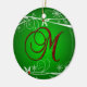 Green background with Red and White Holly and white swirls and snowflakes. Personalize with your own name or other information on the back or leave blank.