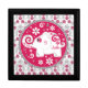 Fancy decorated elephant and daisy floral red, grey, and white jewelry or trinket box. Intricate daisy flower and swirls pattern with a flamboyant white elephant. The design has an ethnic east asian or indian feel. The name on this personalized keepsake box can be changed. To change it, use the personalize option. For more extensive changes (font, font color, font size, text placement), choose customize it.