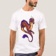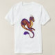 A red Eastern dragon with a purple mane and gold belly scales on a shirt.