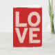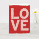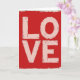This greeting card features the word “LOVE” as the main design, filling most of the front in large block letters. The letters appear in a soft pinkish white and stand out against a deep red background that feels bold and romantic. The word is centered from top to bottom, drawing your eye straight to the message. Both the lettering and the background have a worn, textured look, with small red specks scattered across the lighter letters and uneven color in the red areas. A soft off-white border frames the edges and gives the design a finished look. With no images or added elements, the focus stays entirely on the word itself, making this card a strong and heartfelt way to share love on Valentine’s Day or any special occasion.